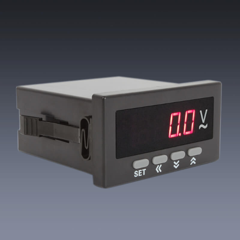 用于測量并以數(shù)字直讀方式顯示出電氣線路中的電壓值。儀表既可作為一般的數(shù)字電壓表使用,也可以通過安裝模擬量輸出模塊使其作為具有顯示一次回路測量值功能的電壓變送器使用,還可以選擇RS485數(shù)字通信模塊作為具有顯示一次回路測量值功能的電壓數(shù)據(jù)采集器使用,也可以選擇繼電器輸出模塊作為常規(guī)電壓越線報警保護(hù)作用,也可以將三個功能模塊同時選擇,使其集測量、報警、變送、通訊等多種功能于一身。