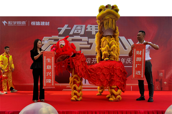 開(kāi)業(yè)現(xiàn)場(chǎng)鼓喧獅舞,禮花綻放,人氣鼎盛。上饒宏宇陶瓷總經(jīng)理周富濤、宏宇陶瓷江西北區(qū)經(jīng)理吳智豪、上饒宏宇陶瓷副總經(jīng)理林晨、上饒宏宇陶瓷副總經(jīng)理鄭忠祥、上饒宏宇陶瓷副總經(jīng)理周健奇等領(lǐng)導(dǎo)嘉賓,及業(yè)界同行出席了本次活動(dòng),共同見(jiàn)證盛大時(shí)刻。