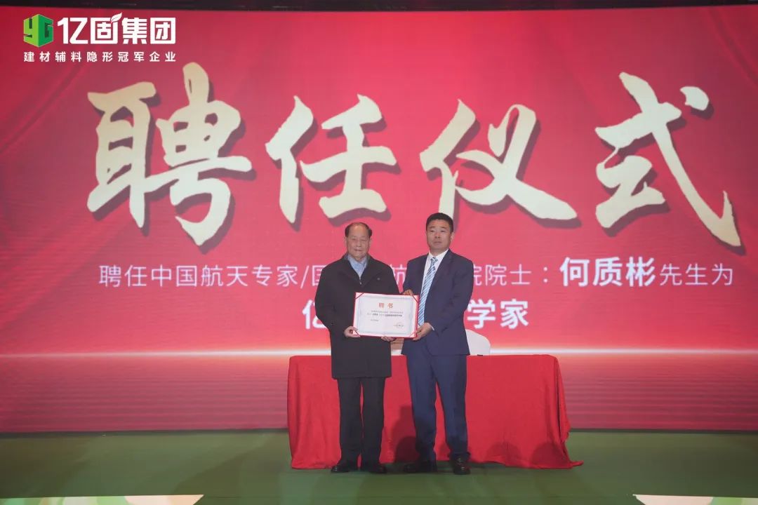 億固始終堅信,科技創新是企業發展的核心驅動力。會上,億固集團正式聘任中國航天專家、國際宇航科學院院士何質彬先生為億固首席科學家;聘任南京工業大學博導李東旭先生為億固研究院首席院長;聘任北京商報家居事業部主任吳厚斌先生為億固宣傳推廣顧問;聘任中國家裝教父余靜贛先生為藝術顧問。此舉將進一步推動公司技術創新和產業升級,帶來全新的藝術視角和創意靈感。