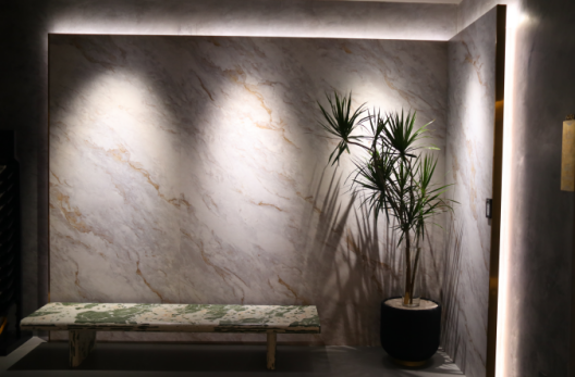 歐若拉精工奢石柳州店將色彩、材質的藝術搭配運用到生活中,豐富的樣式與產品風格,吸引著過往行人的注意,每一個空間都有著不同的主題和色彩基調,持續滿足消費者和設計師的需求,外立面時尚具有張力,整個展廳采用中性色調演繹獨屬于柳州的奢適生活,進門處的超薄奢石背景墻,上演著燈光與奢石的完美結合,勾勒出生活的美意,感受隨著空間轉換而改變,體驗藝術成為生活的一部分。