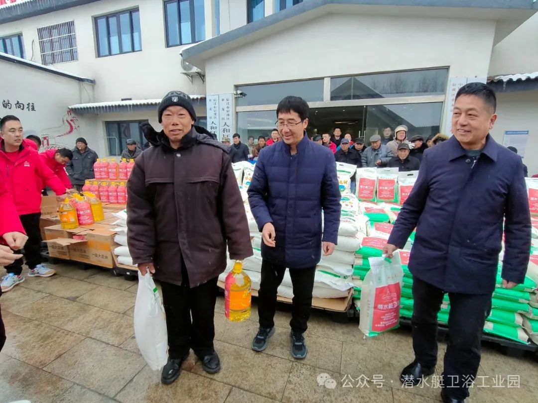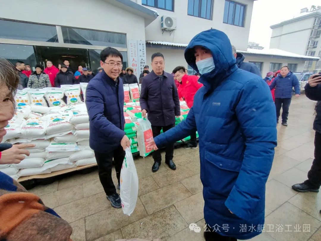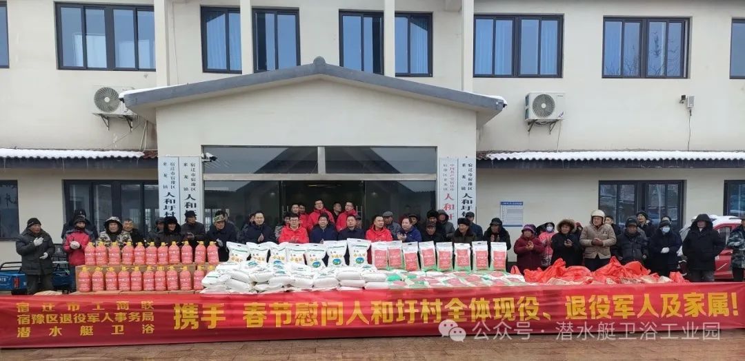 市工商聯副主席劉永 、宿豫區退役軍人事務局副局長丁斌、潛水艇衛浴領導高明為現役、退役軍人及家屬送上油、米、面,豬肉等慰問品,向他們致以節日的慰問和祝賀。
