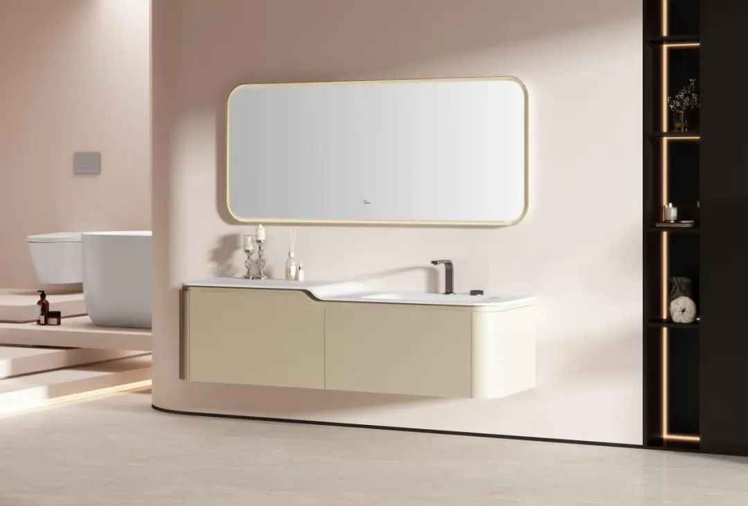 此外,帝王潔具多款「公爵板」系列產品均已上市:【奇境·定制浴室柜】展現了帝王成熟的色彩工藝,公爵板臺盆與多層實木柜體實現了質感統一、色系統一,更提供了臺上盆、臺下盆多樣化選擇;【頤和·定制浴室柜】則通過公爵板實現了藝術雙盆一體化成型設計,給予了衛浴空間更多美學想象;【和顏·定制浴室柜】通過公爵板打造了高低干濕分區臺面,以階梯式設計實現干濕分區與洗漱動線美學平衡。