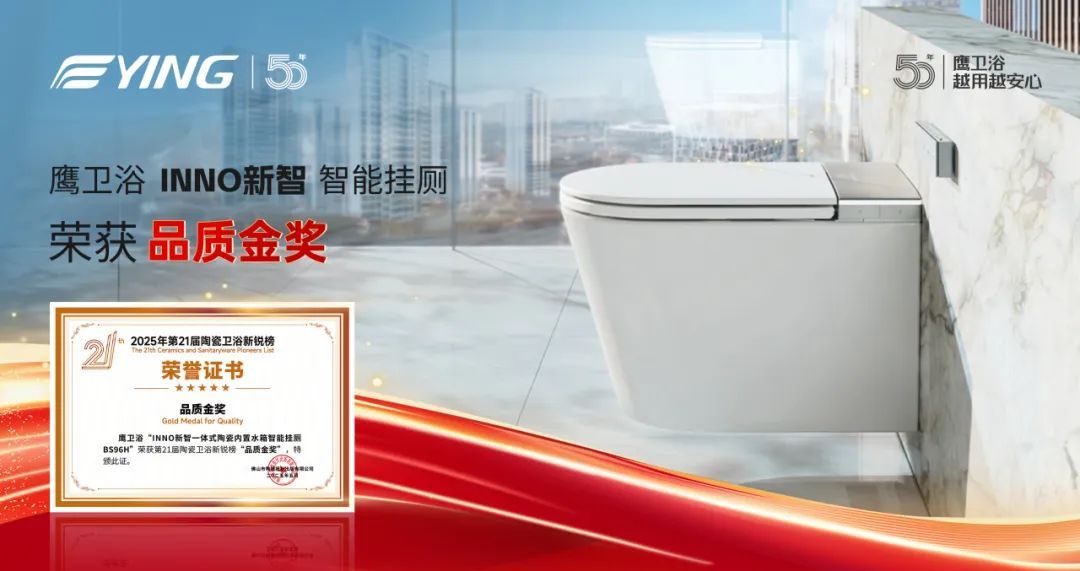 2025年5月23日,第21屆陶瓷衛(wèi)浴新銳榜頒獎(jiǎng)典禮在佛山盛大舉行。擁有51年歷史的民族衛(wèi)浴品牌鷹衛(wèi)浴榮膺“年度影響力品牌金獎(jiǎng)”,同時(shí),2025年重磅推出的 INNO新智 智能掛廁憑借創(chuàng)新技術(shù)摘得“品質(zhì)金獎(jiǎng)”。榮譽(yù)的背后,是鷹衛(wèi)浴以用戶需求為核心、以技術(shù)革新為引擎的品牌進(jìn)化之路。